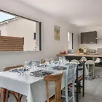 Situé à environ 7 km de Golf de Pornic, cet établissement Escapade dans une maison moderne a Saint Michel Chef Chef invite les clients à se détendre sur une terrasse.